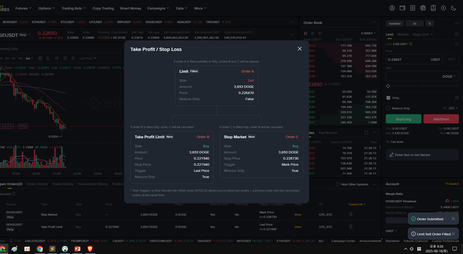 - ๐ถ ์ง์ ์ฝ์ธ: DOGE/USDT