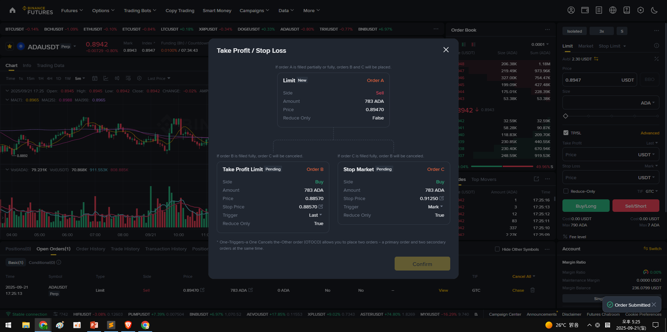 - ์กฐ๊ฑด(TP/SL) ๊ฑธ๊ณ ๋ฐ์ด๋ธ์ค ์ฐฝ์ ๋ซ๊ณ ์๊ฑฐ๋ ๋ค๋ฅธ ์ผ์ ์ง์ค