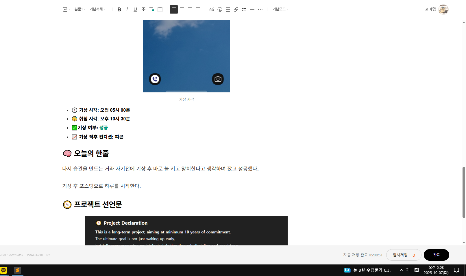 - ๐ ๋งค์ผ ๊ธฐ์ ์๊ฐ๊ณผ ์ทจ์นจ ์๊ฐ ๊ธฐ๋ก