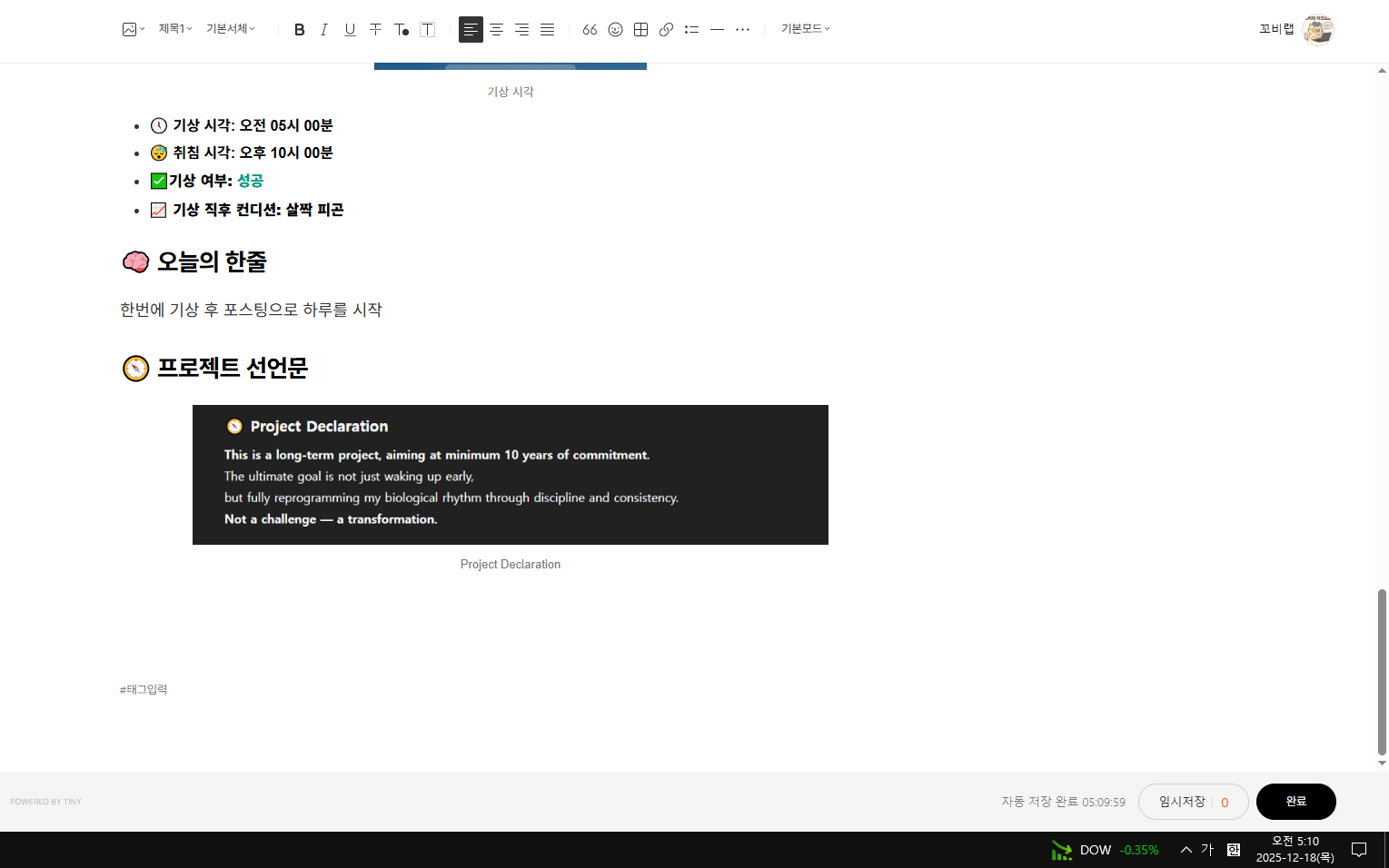 - ๐ ๋งค์ผ ๊ธฐ์ ์๊ฐ๊ณผ ์ทจ์นจ ์๊ฐ ๊ธฐ๋ก