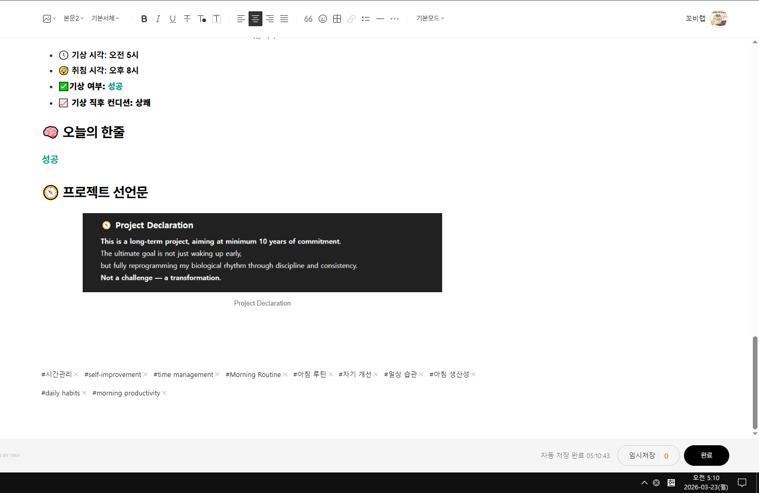 - ๐ฏ ์์นจ ์๊ฐ๋ ์ง์ค ๋ฃจํด ์ค๊ณ ๊ธฐ๋ฐ ๋ง๋ จ