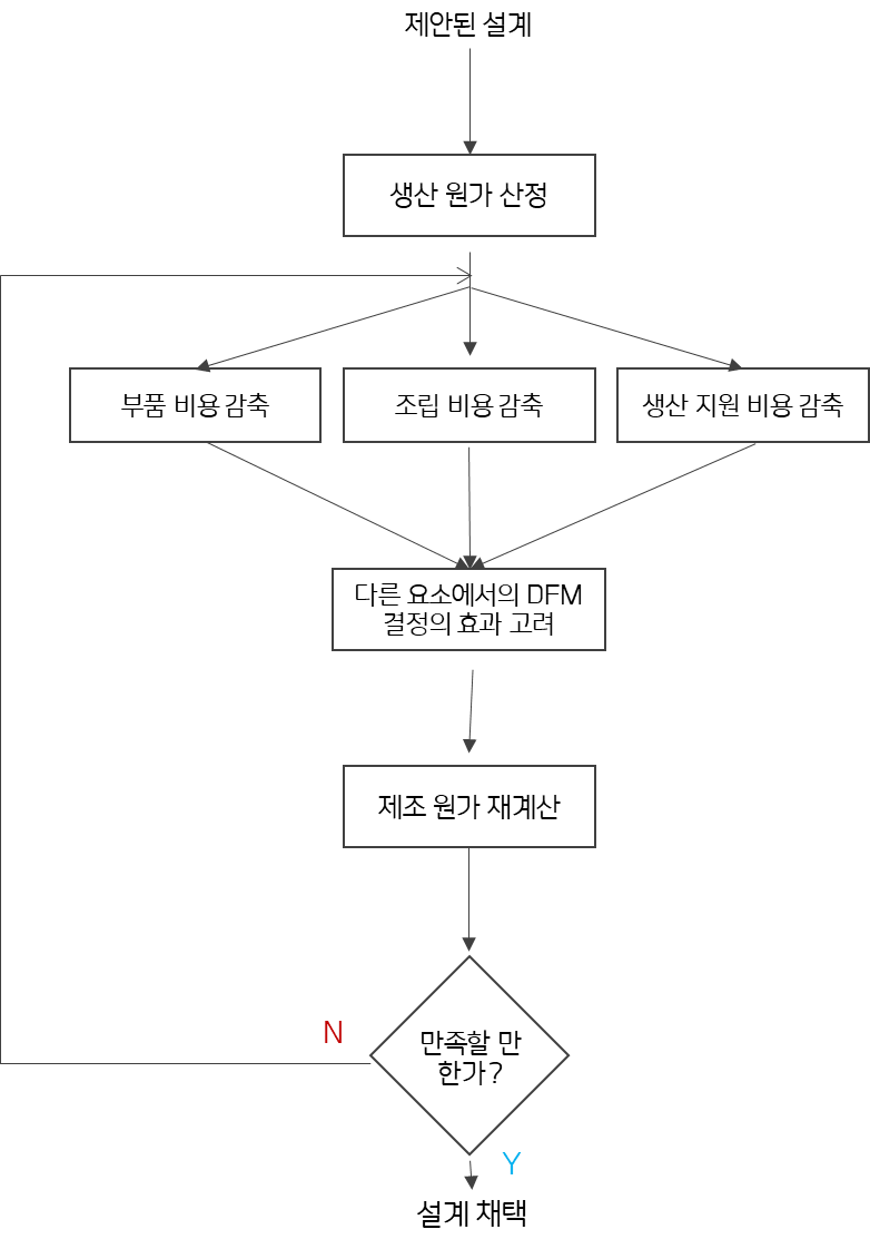 1. μ μ‘°μκ°μ λν νκ° 2. λΆνμκ°μ μ κ° 3. 쑰립λΉμ©μ μ κ° 4. μμ°μ§μκ΄λ ¨ λΉμ©μ μ κ° 5. κ΄λ ¨ μμλ€μ λ°λ₯Έ DFM μν₯μ λν νκ°