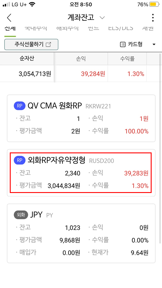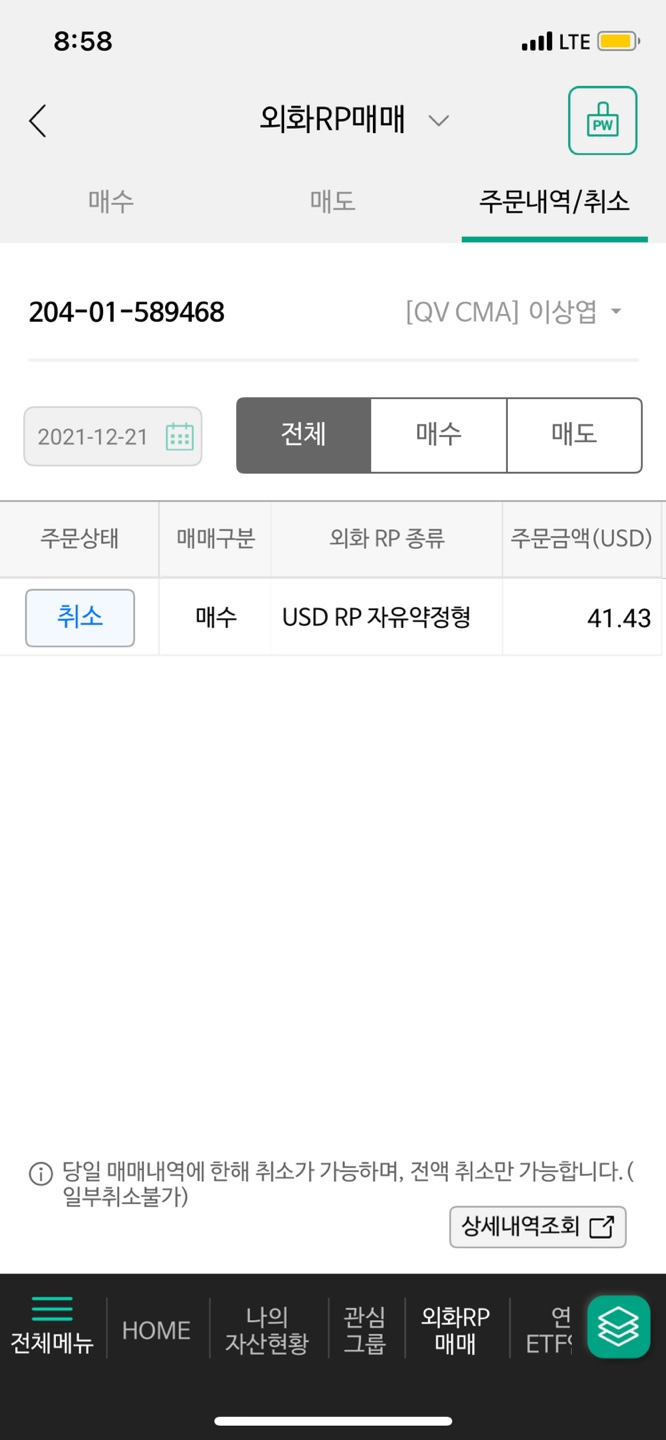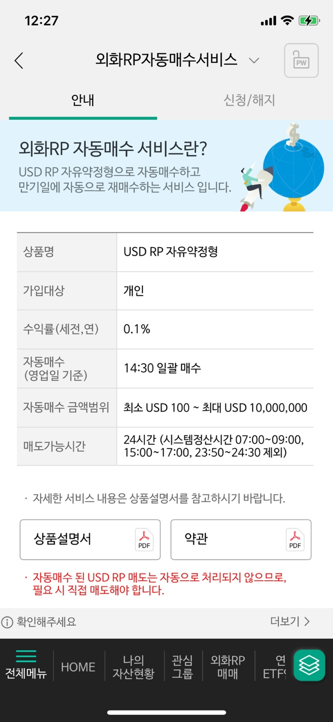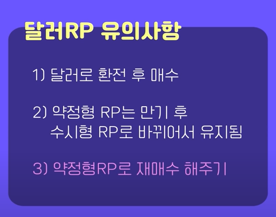 ๊ทธ๋์์ ๊ทธ๋ฅ CMA๊ณ์ข์ ๋ฐฐ๋น๊ธ/ํ์ ์ก USD๋ฅผ ๋ฃ์ด๋์๋๋ฐ ์ด์ ์ธํ RP ๋งค์๋ฅผ ํด์ผ ๊ฒ ๋ค.