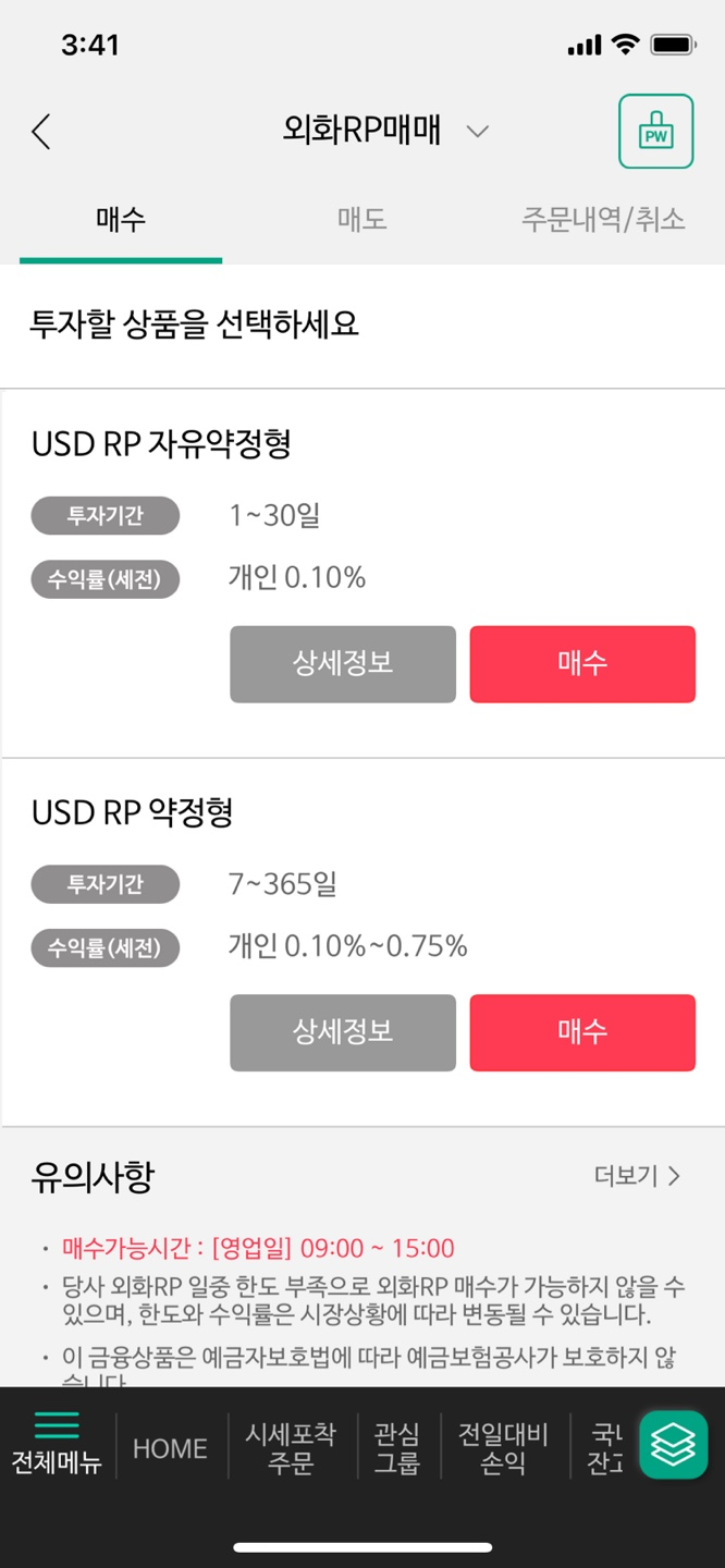 ๋งค์ ๊ฐ๋ฅ์๊ฐ์ ์์ ์ผ ๊ธฐ์ค 09:00 ~ 15:00๋ค.(์ด ์๊ฐ์์ ์ํ๋ฅผ USD๋ก ํ์ ํ ๋งค๋งค๋ฅผ ํด์ผ ๋๋ค.)