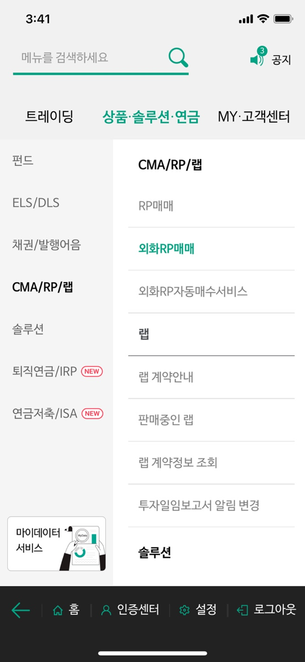 ๋๋ฌด์ฑ ์คํ ํ ์ํ·์๋ฃจ์ ·์ฐ๊ธ > CMA/RP/๋ฉ > ์ธํRP๋งค๋งค ์ ํ