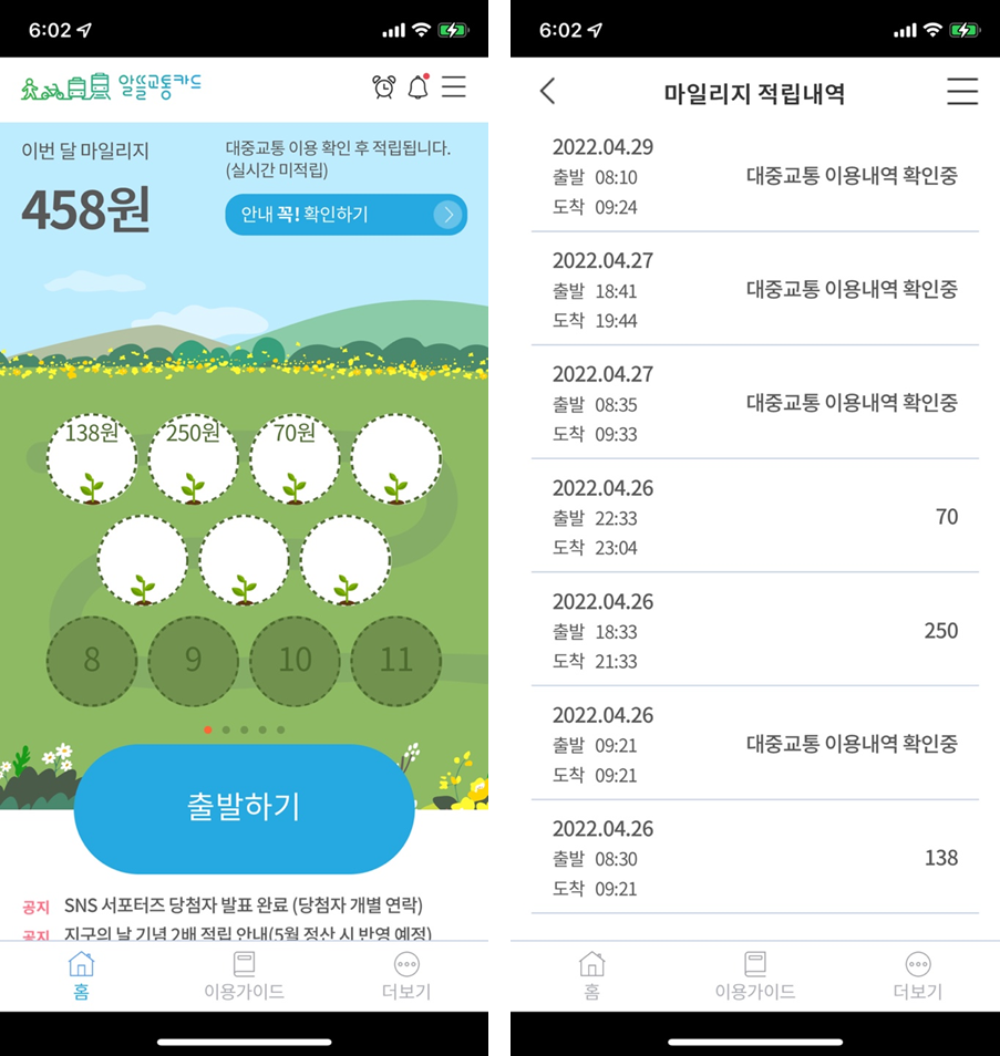 ๋์ค๊ตํต์ ์ด์ฉํ๊ธฐ ์ํด ๊ฑท๊ฑฐ๋ ์์ ๊ฑฐ๋ก ์ด์ฉํ ๊ฑฐ๋ฆฌ๋งํผ ๋ง์ผ๋ฆฌ์ง๋ฅผ ์ ๋ฆฝํ์ฌ ์ง๊ธ ๋ฐ์ ์ ์๋ค.