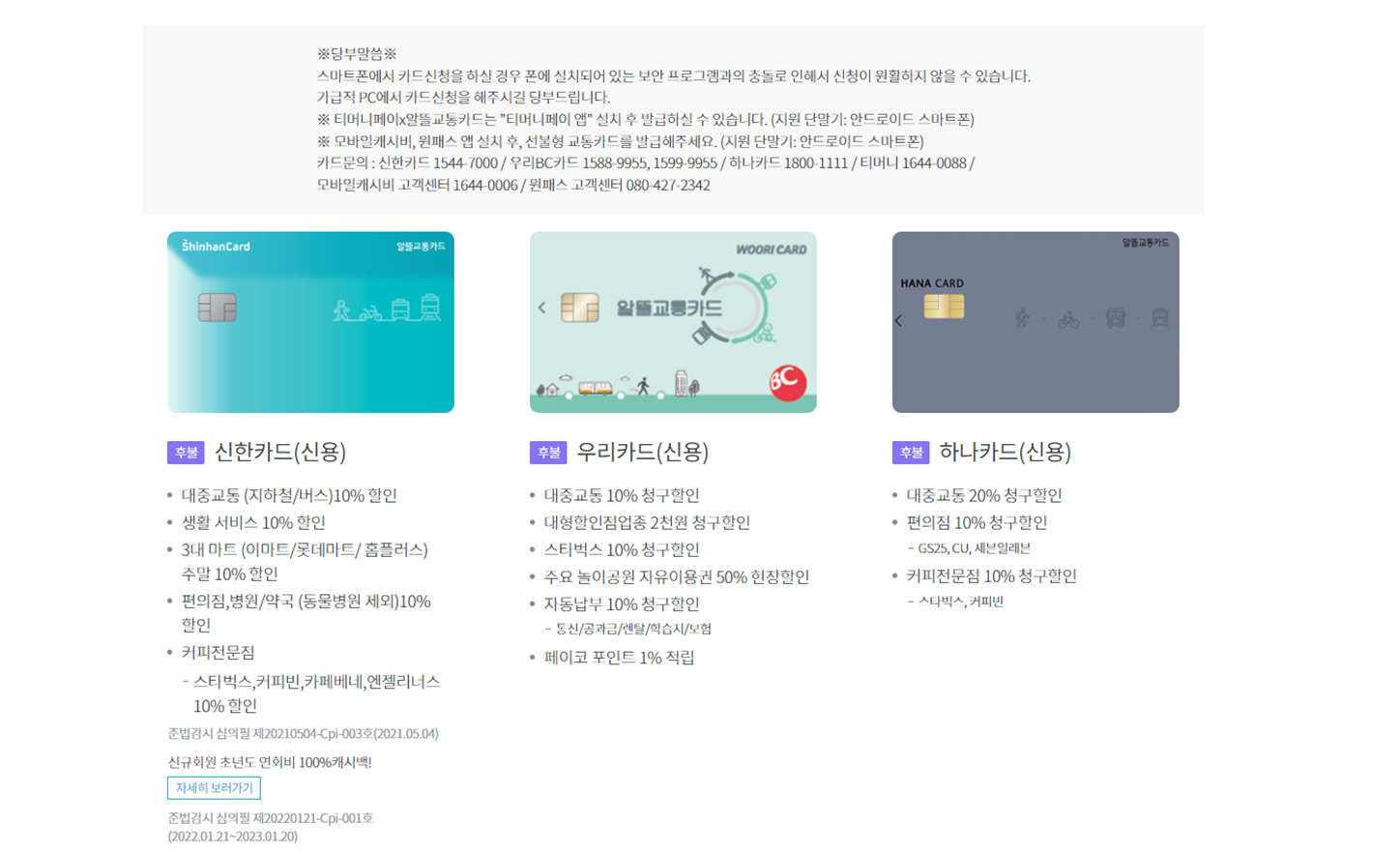 1. ์๋ฐ๊ตํต์นด๋์ฉ ์นด๋ ๋ฐ๊ธ(์๋ ์ฃผ์์์ ์นด๋ ๋ฐ๊ธ)๐ณ