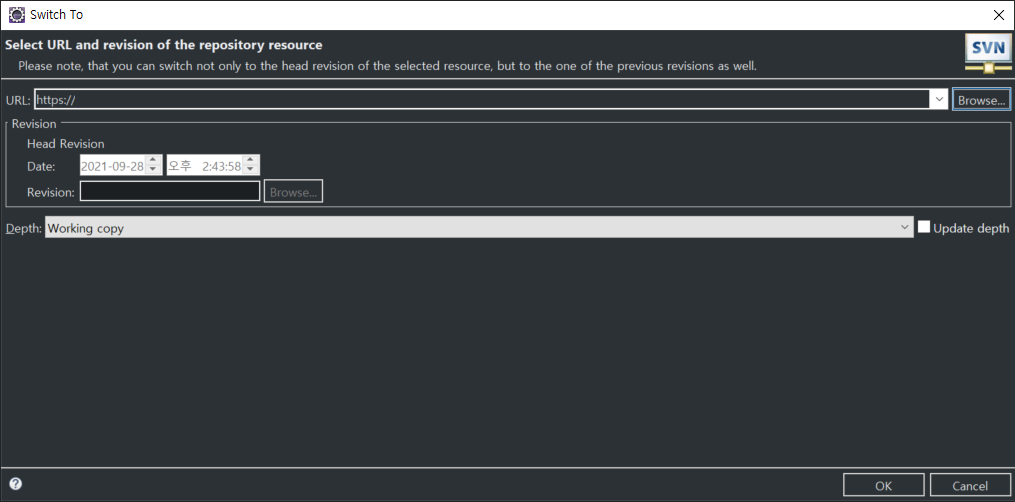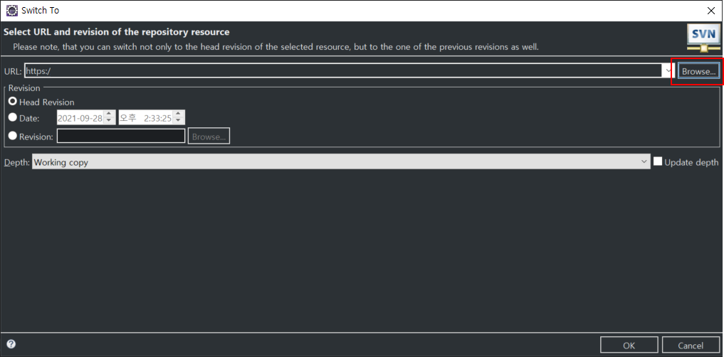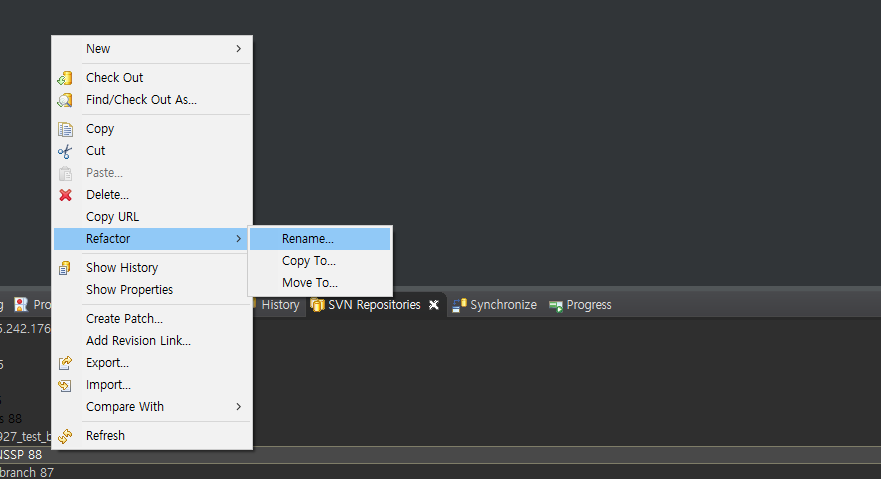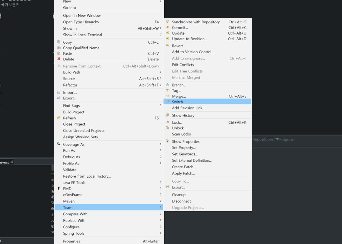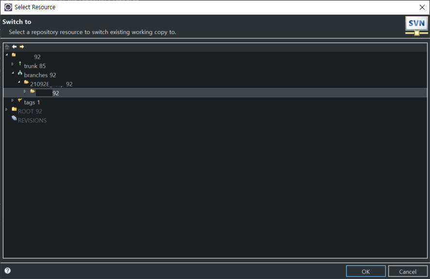 ์ ์ฒ๋ผ ํ๋ก์ ํธ๋ช ์ ๋ณ๊ฒฝํด์ check out๋ฐ๋ ๋ฐฉ๋ฒ๋ ์๊ณ svn์ switch ๊ธฐ๋ฅ์ ์ด์ฉํด์ main์์ ๋ค๋ฅธ branch๋ก ๋ณ๊ฒฝํด์ ๊ด๋ฆฌํ๋ ๋ฐฉ๋ฒ๋ ์์