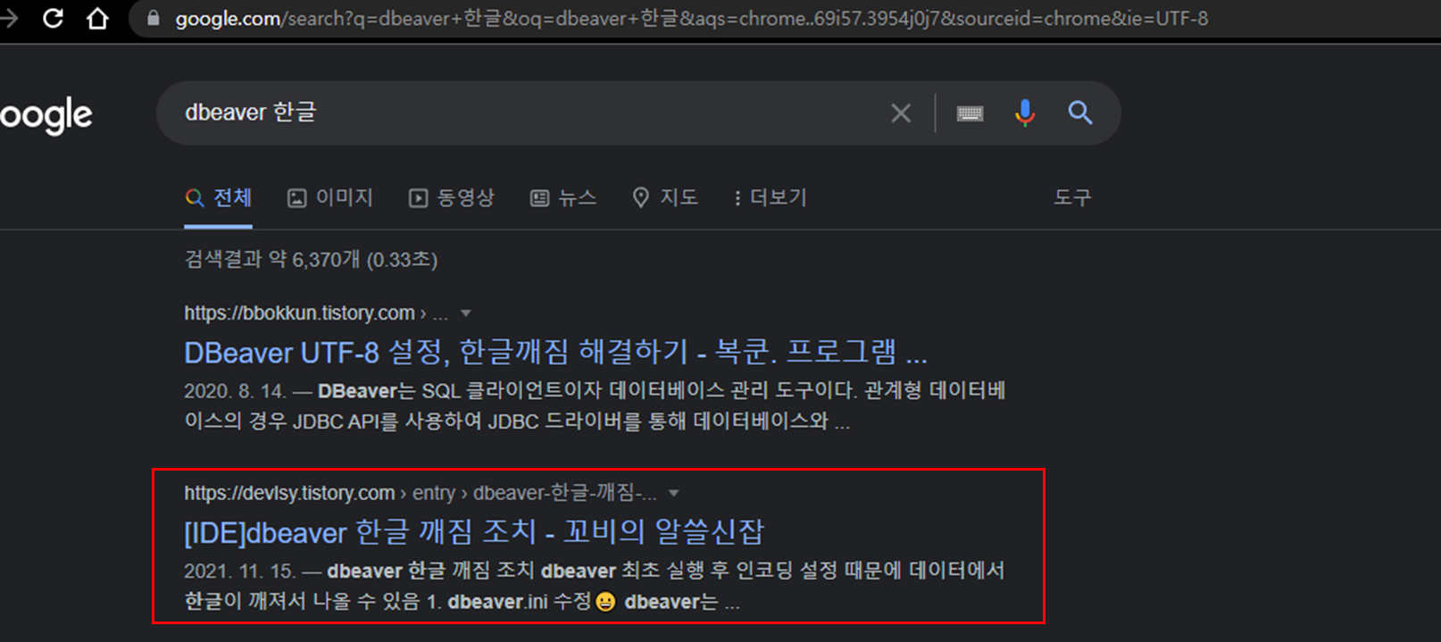 [IDE]dbeaver ํ๊ธ ๊นจ์ง ์กฐ์น