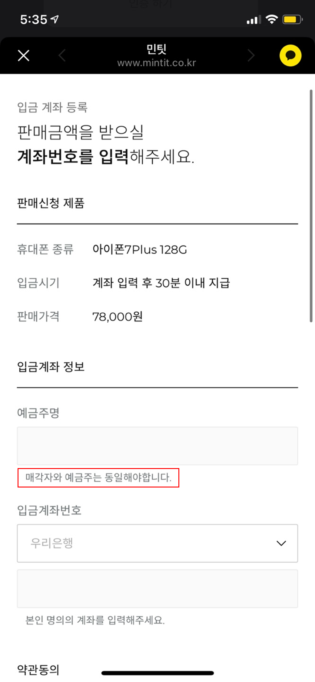 ๊ณ์ข๋ฒํธ ์ ๋ ฅ์ ๋๋ฌ์ ํ๋งค๋๊ธ์ ์ ๊ธ๋ฐ์ ๊ณ์ข๋ฒํธ๋ฅผ ์ ๋ ฅ ํฉ๋๋ค.(โป ๋ณธ์ธ์ธ์ฆํ ๋ช ์์ ๋์ผํด์ผ ํจ)