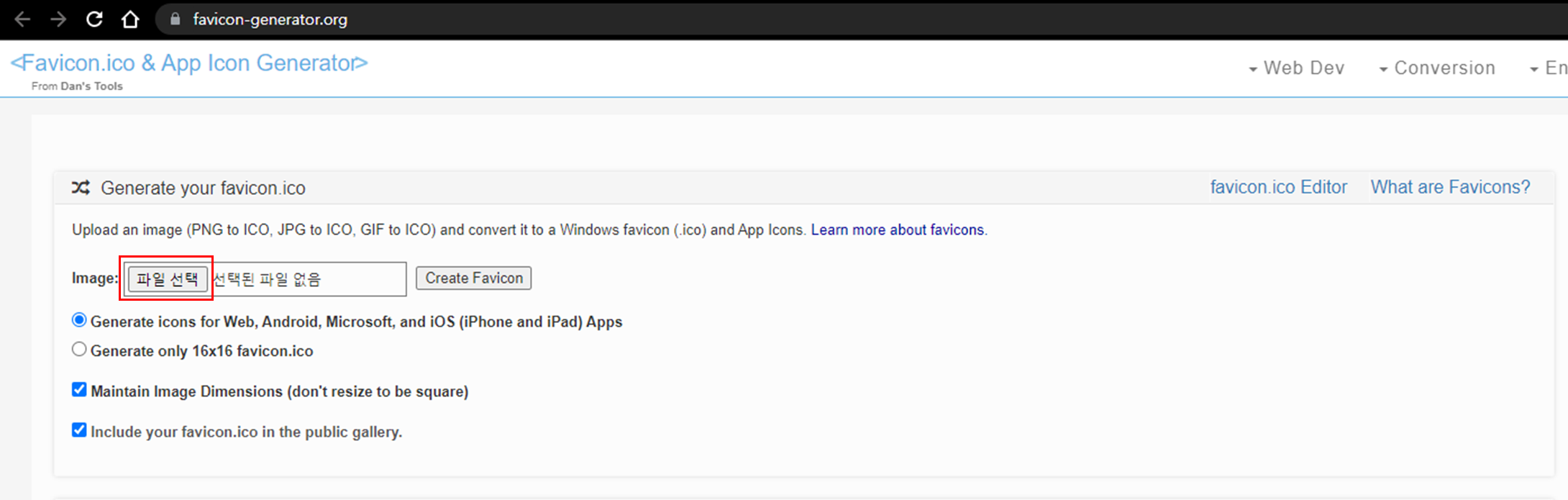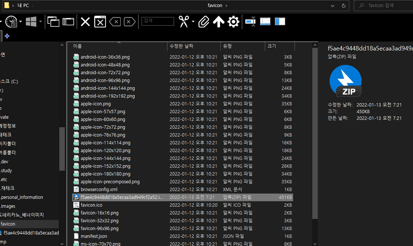์ ํ ํ Create Favicon์ ๋๋ฅด๋ฉด ์๋์ฒ๋ผ ํ๋น์ฝ์ด ์์ฑ์ด ๋๊ณ Download the generated favicon์ ๋๋ฌ์ ๋ค์ด๋ฐ๋๋ค.(zipํ์ผ ํ์์ด๋ค.)