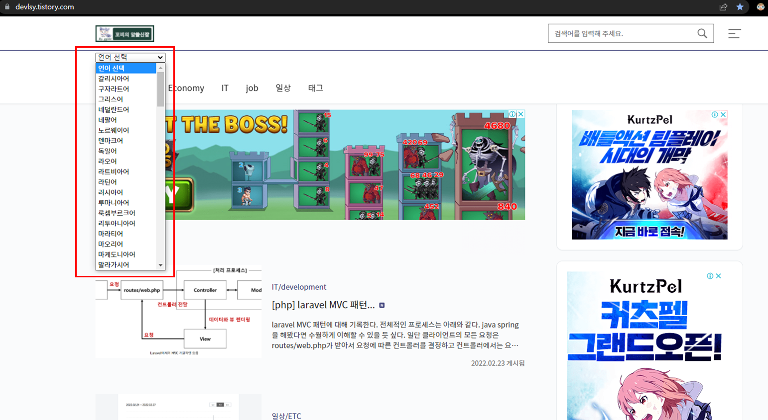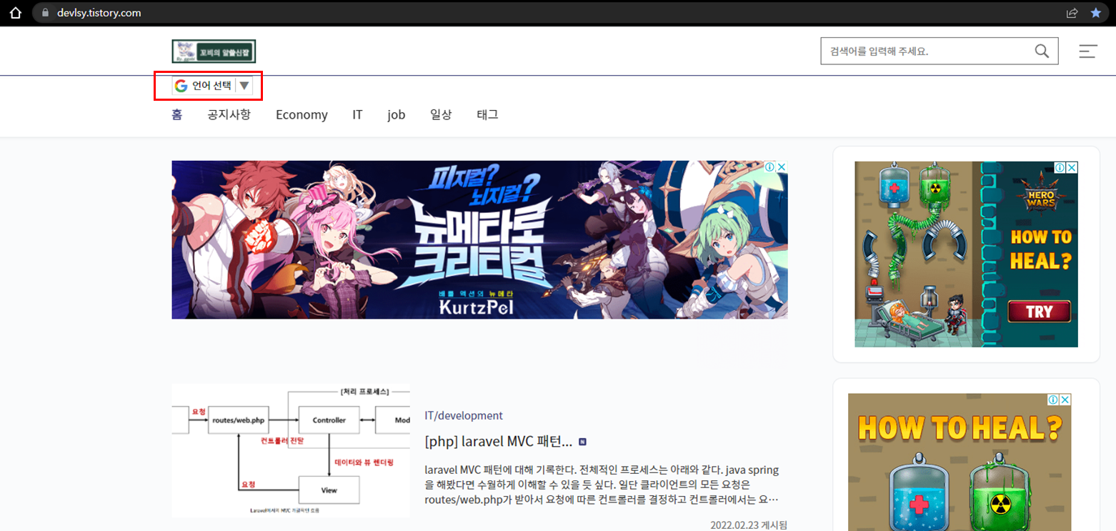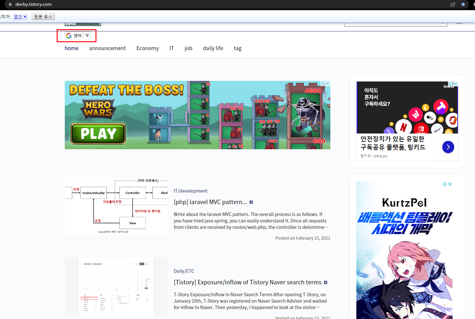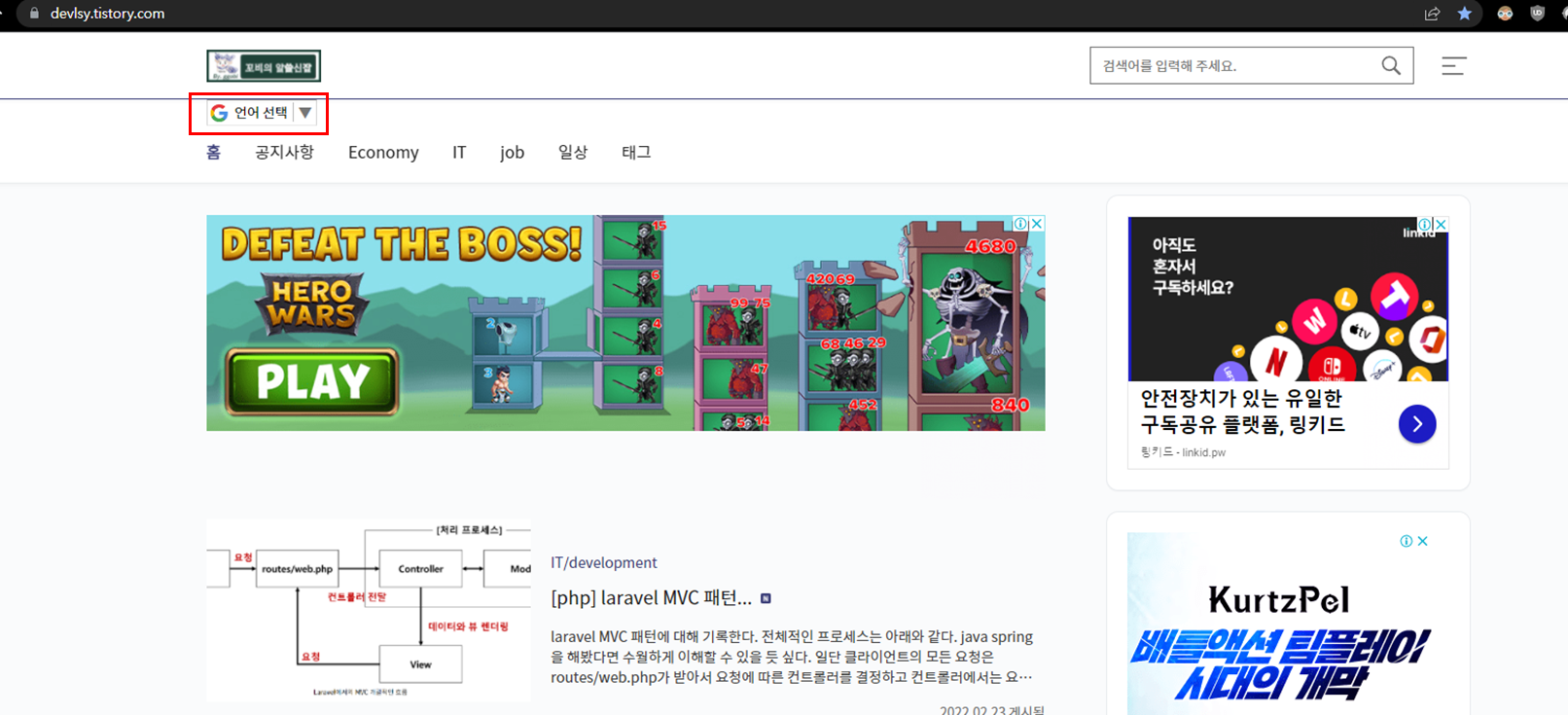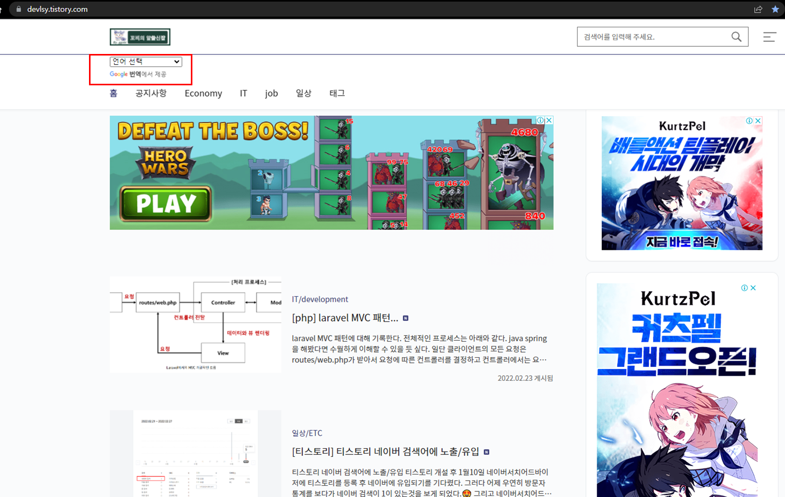 ์ด์ ํฐ์คํ ๋ฆฌ์ ๊ตฌ๊ธ ๋ฒ์ญ๊ธฐ๋ฅผ ์ถ๊ฐํ๊ณ ๊ทธ ๋ด์ฉ์ ๊ธฐ๋กํ๋ค.