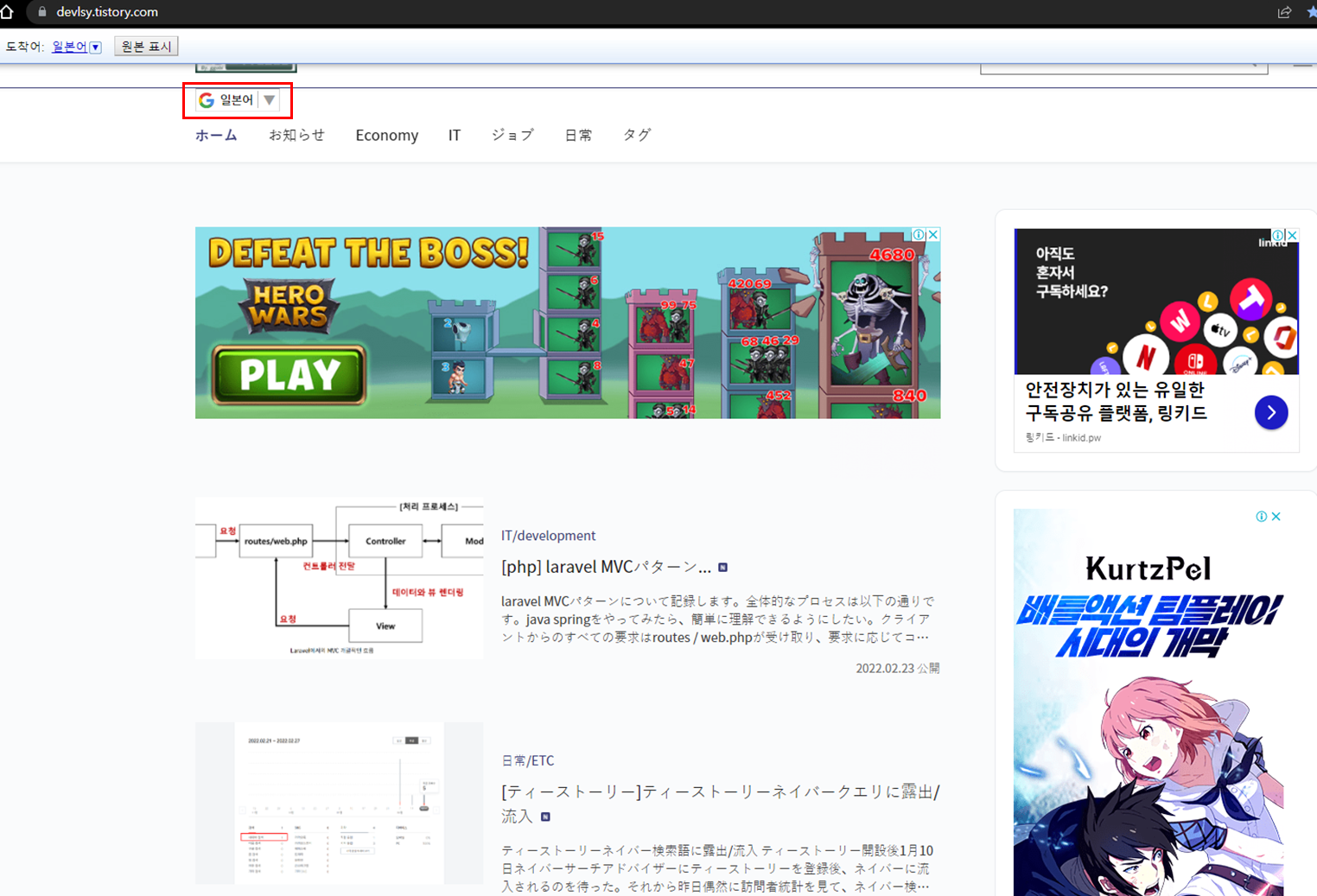 ๊ตฌ๊ธ ๋ฒ์ญ๊ธฐ๋ฅผ ์ ์ฉ์ ํ ๋ชจ์ต์ ์๋์ ๊ฐ๋ค.