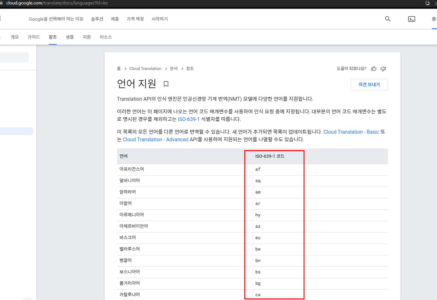 ์ธ์ด ์ง์ | Cloud Translation | Google Cloud