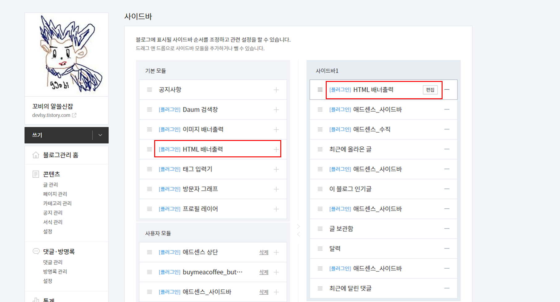 ๋ธ๋ก๊ทธ ๊ด๋ฆฌ์ > ๊พธ๋ฏธ๊ธฐ > ์ฌ์ด๋๋ฐ > HTML ๋ฐฐ๋์ถ๋ ฅ ์ถ๊ฐ