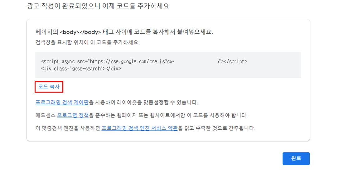 3. ๋ง๋ค๊ธฐ ํด๋ฆญ ์ ์๋์ฒ๋ผ ์ฝ๋๊ฐ ์์ฑ๋๊ณ ์ฝ๋๋ฅผ ๋ณต์ฌํด ๋๋๋ค.
