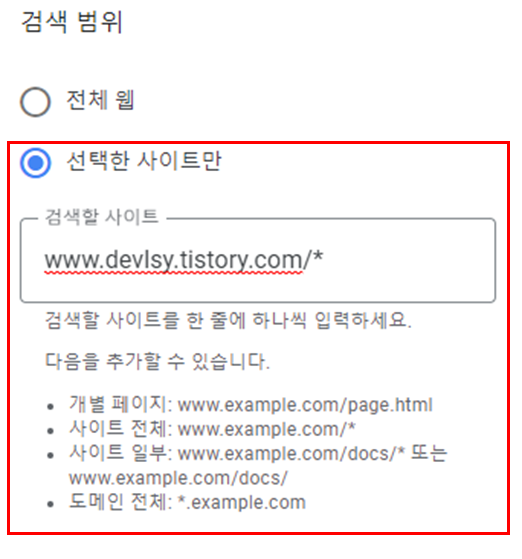 2-2. ์ ํํ ์ฌ์ดํธ๋ง: ์ ํํ ์ฌ์ดํธ์์๋ง ๊ฒ์