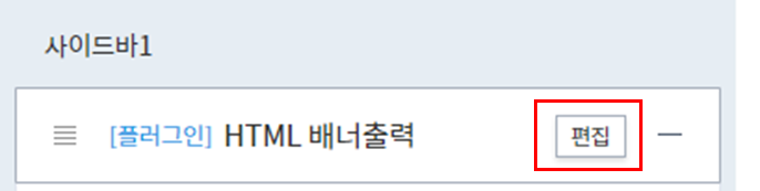 ํฐ์คํ ๋ฆฌ ๊ด๋ฆฌ์ > ๊พธ๋ฏธ๊ธฐ > ์ฌ์ด๋๋ฐ > HTML ๋ฐฐ๋ ์ถ๋ ฅ(ํ๋ฌ๊ทธ์ธ ์ธํ ํ์)์ + ์ ํ ํ ์ํ๋ ์ฌ์ด๋๋ฐ ์์น์ ์ถ๊ฐ