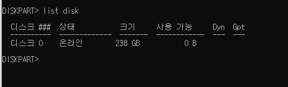 ๊ตฌ๊ธ๋ง ํ ์๋ ๋ช ๋ น์ด๋ก SSD ํํฐ์ ๊ตฌ์กฐ๋ฅผ GPT > MBR๋ก ๋ณํ ํ ์ค์น ์ฑ๊ณต ํ๋ค.