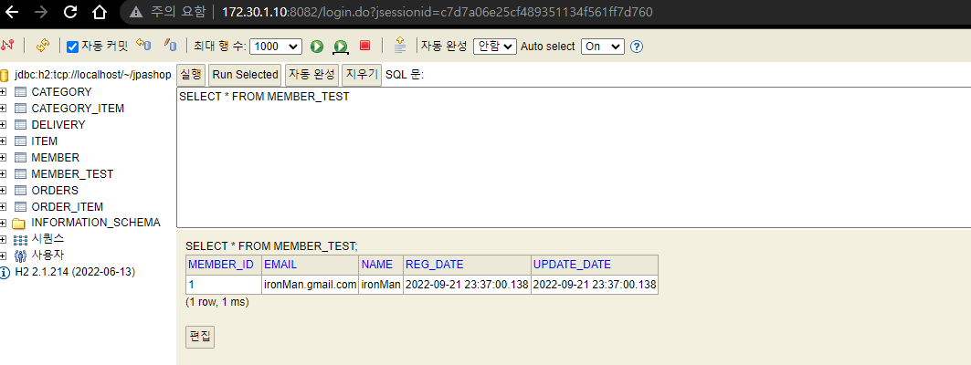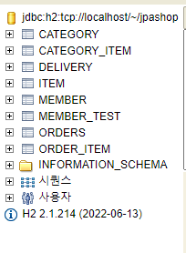 url: jdbc:h2:tcp://localhost/~/jpashop