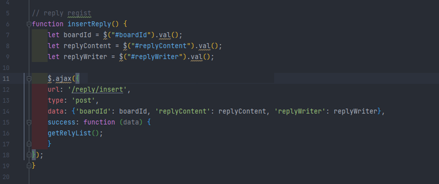 data: {'boardId': boardId, 'replyContent': replyContent, 'replyWriter': replyWriter},