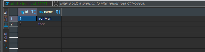 INSERT INTO test_220714(id, name)VALUES(1, 'ironMan');