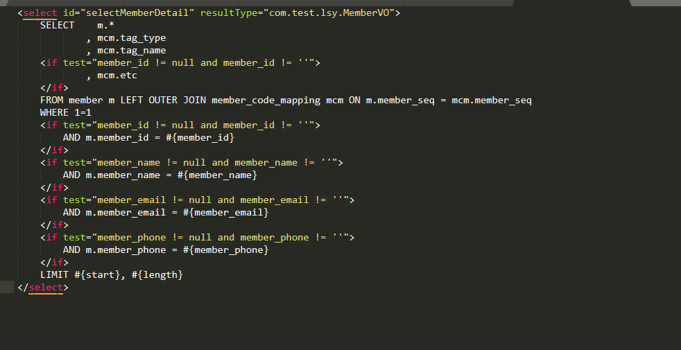 <if test="member id != null and member_id != ''">