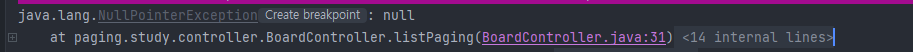๋๋ฒ๊ฑฐ๋ก ์ฐ์ด๋ณด์ boardService๊ฐ null์ด๋ค.