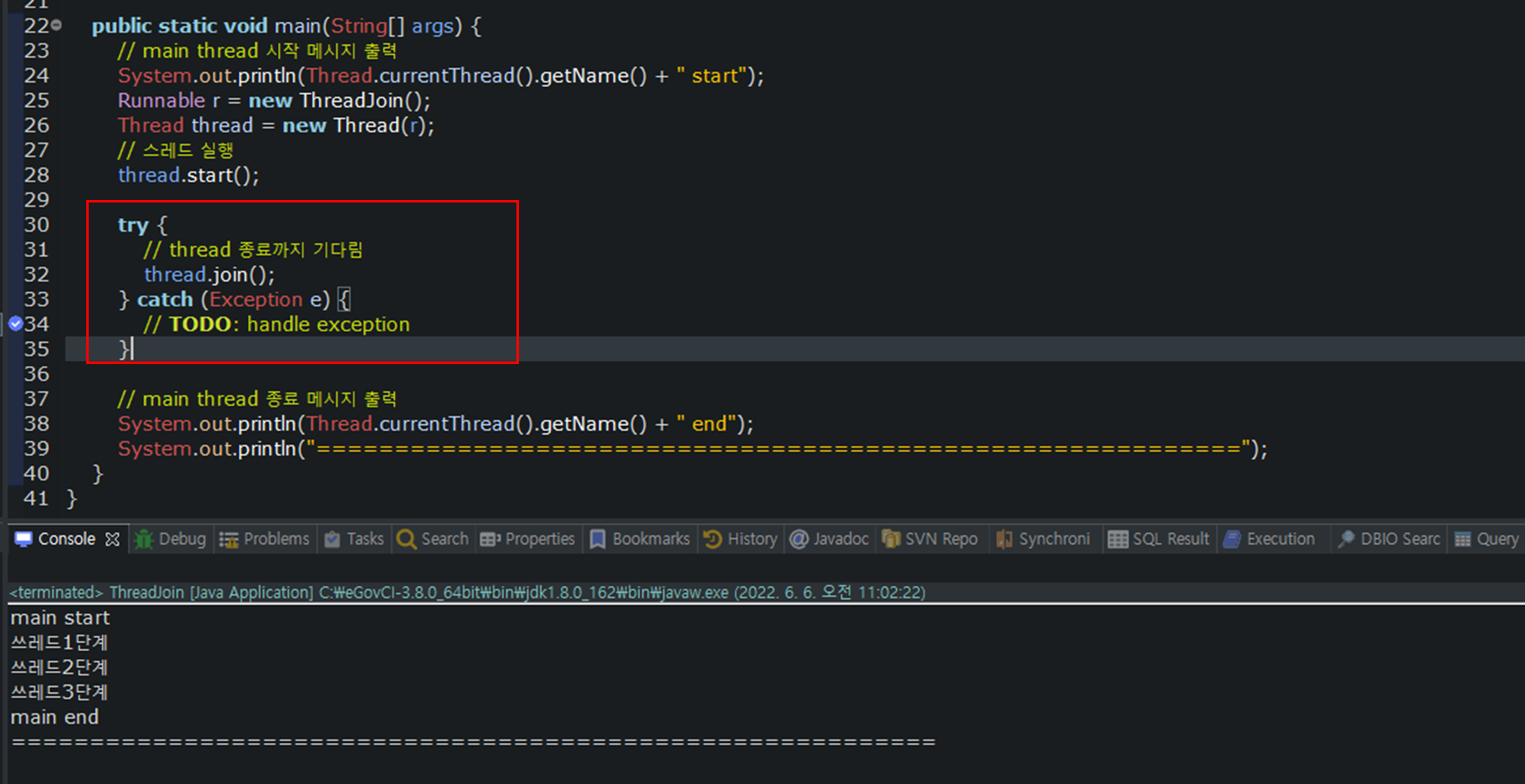 // thread.join() μΆκ°(μμΈμ²λ¦¬ νμ)