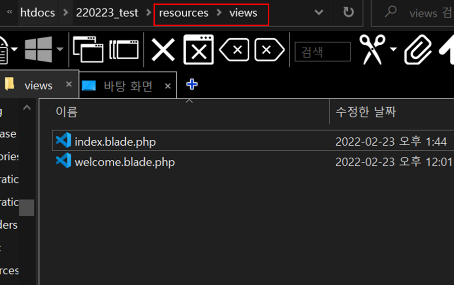 *.blade.php๋ artisan make ๋ช ๋ น์ด๋ฅผ ํตํ ์๋ ์์ฑ์ ๋ณ๋๋ก ์ง์ํ์ง ์๊ธฐ์ ์ง์ ์์ฑ ํ์.