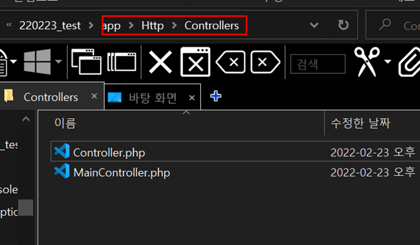 ์ ๋ช ๋ น์ด๋ก MainController๋ผ๋ ์ปจํธ๋กค๋ฌ๋ฅผ ๋ง๋ค๋ฉด App > http > Controllers์ ์์ฑ๋๋ค.