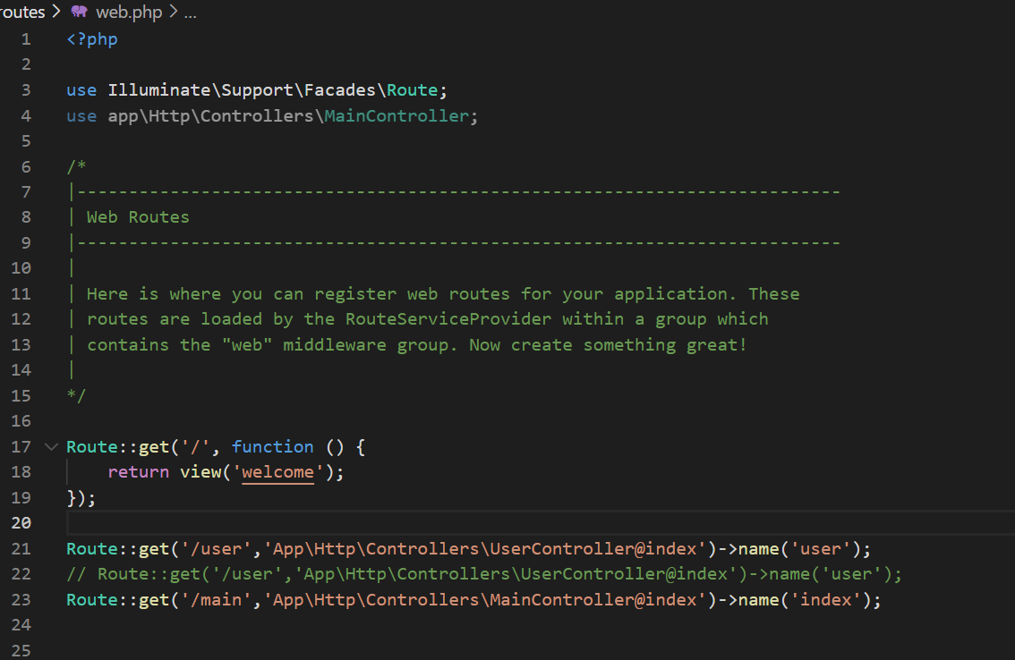 ๊ฒฝ๋ก : C:\xampp\htdocs\ํ๋ก์ ํธ๋ช \routes