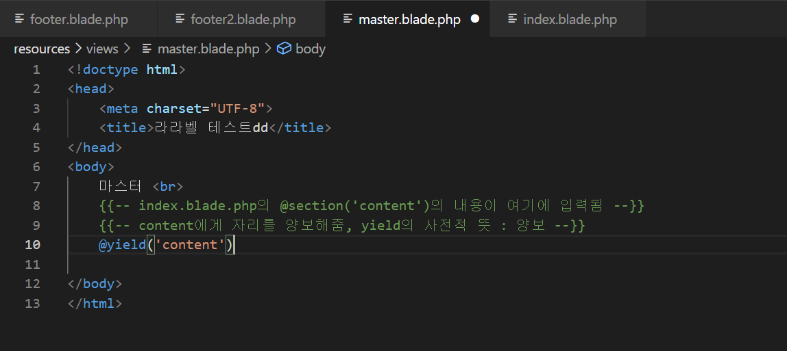 <!-- master.blade.php ์๋ค๋ ๊ฐ์ ํ -->