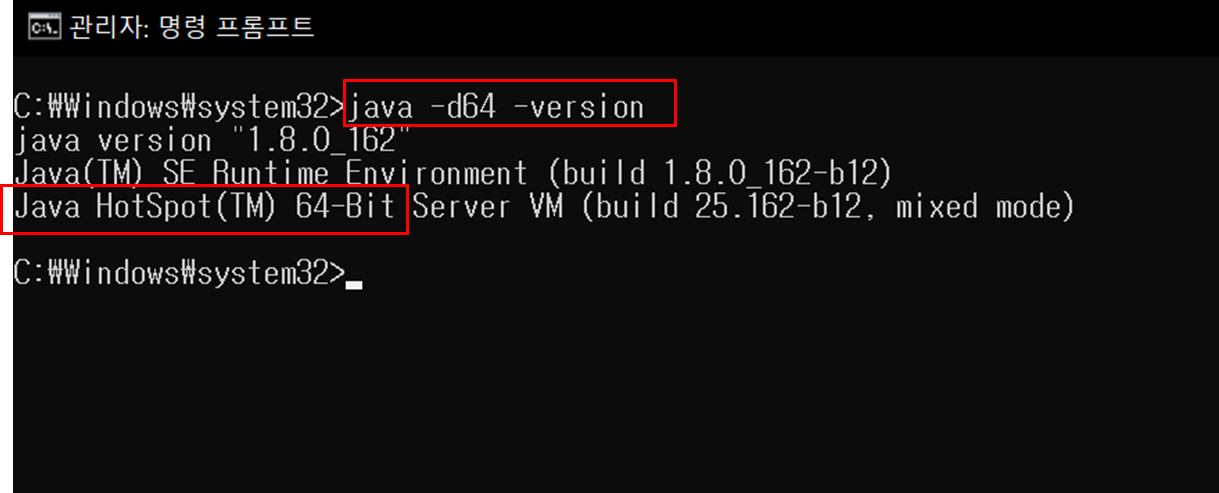 Java bit ํ์ธํ ๊ฒฝ์ฐ cmd ์คํ ํ ์๋ ๋ช ๋ น์ด ์ ๋ ฅ