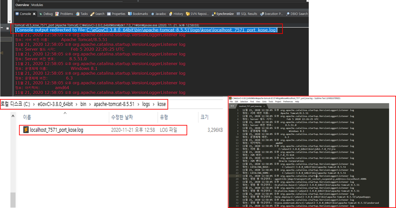 eclipse์์ tomcat ์คํ ์ ๋ก๊ทธํ์ผ ์ ์ฅ