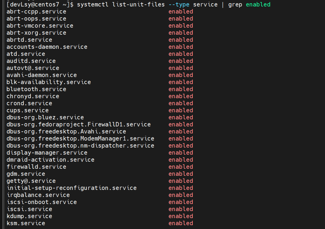 systemctl list-unit-files --type service | grep enabled