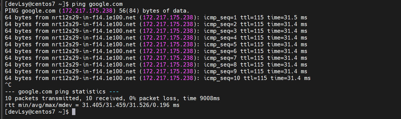 ์๋ ๊ตฌ๊ธ ์๋ฒ๋ก ping์ ๋ ๋ฆฐ ์ํ