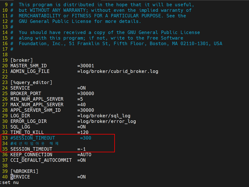vi /opt/cubrid/conf/cubrid_broker.conf