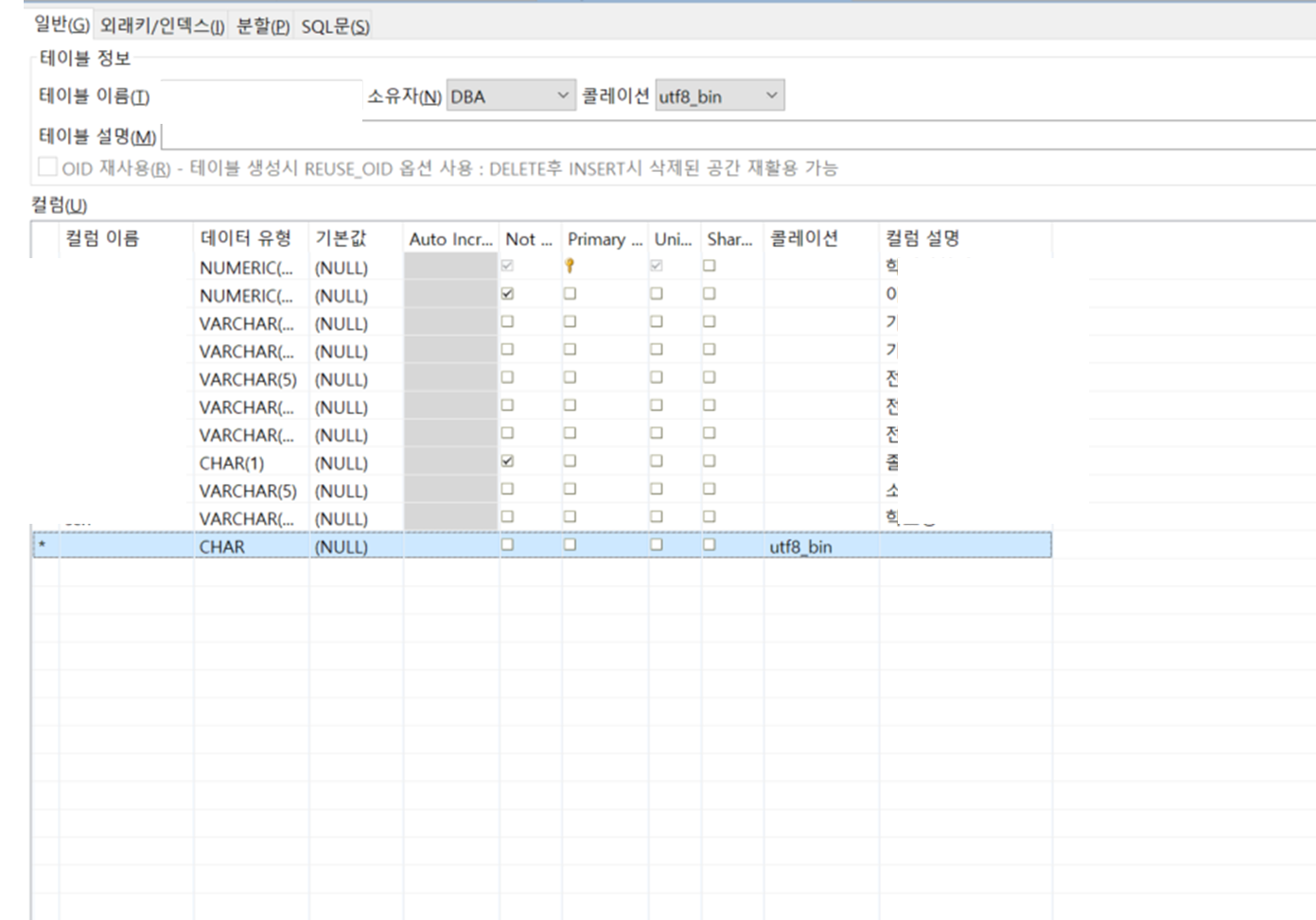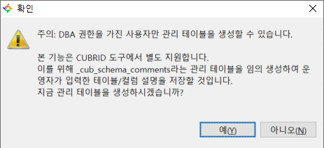 cubrid manager์์ ํ ์ด๋ธ ์ฝ๋ฉํธ ์์ฑ
