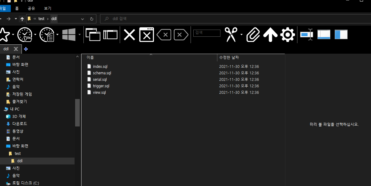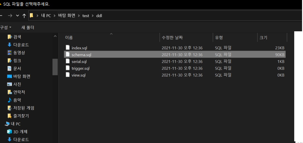 ์ต์ข ์ ์ผ๋ก ์๋ฃ๊ฐ ๋๋ฉด sqlํ์ผ ์ ์ฅ๊ฒฝ๋ก์ ์๋์ฒ๋ผ ddlํด๋์ dmlํ์ผ๋ค์ด ์์ฑ๋ฉ๋๋ค.