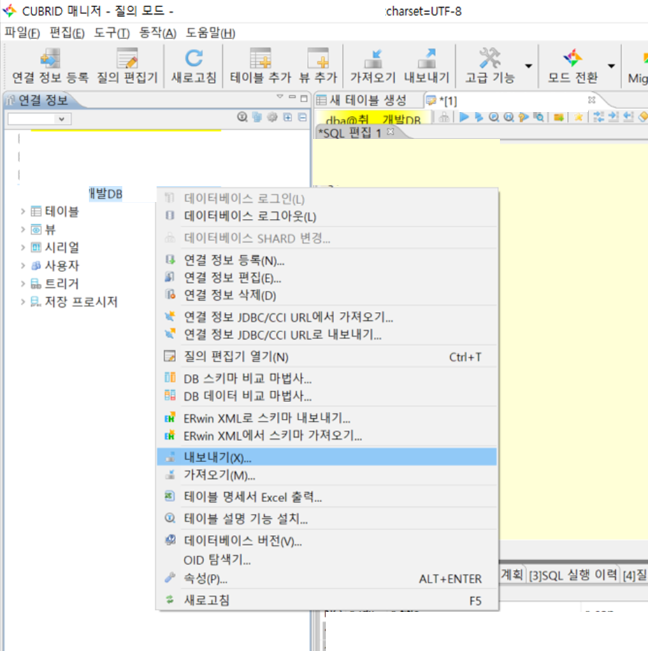 ๋ค๋ฆ๊ฒ ์ ์ฌ์ค์ธ๋ฐ cubrid manager์์ db ๋ด๋ณด๋ด๊ธฐ, ๊ฐ์ ธ์ค๊ธฐ ํ ๊ฒฝ์ฐ