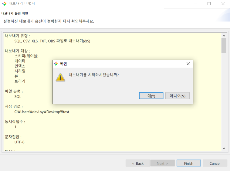 ๋ด๋ณด๋ด๊ธฐ ํ ์ ๋ณด๊ฐ ๋ง๋์ง ํ์ธ ์ดํ Finishํ๋ฉด export๊ฐ ์คํ๋ฉ๋๋ค.