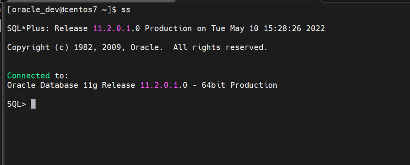 ๋ ss๋ฅผ sqlplus / as sysdba๋ก ํ๊ฒฝ๋ณ์์ alias๋ฅผ ๋ฏธ๋ฆฌ ์ธํ ํด ๋๋ค.