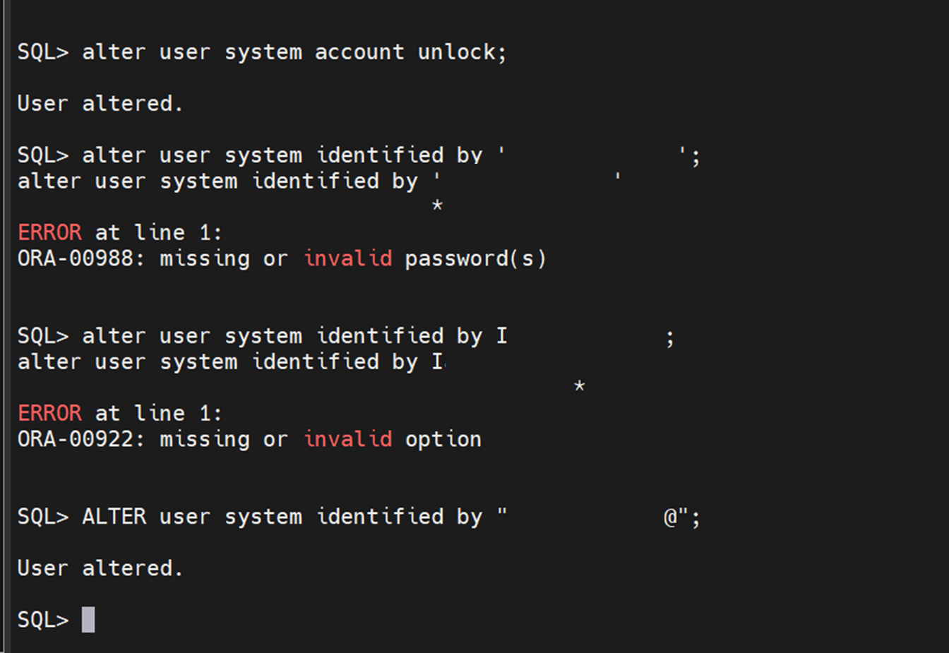 ALTER USER system identified by ๋ณ๊ฒฝํ ๋น๋ฐ๋ฒํธ;