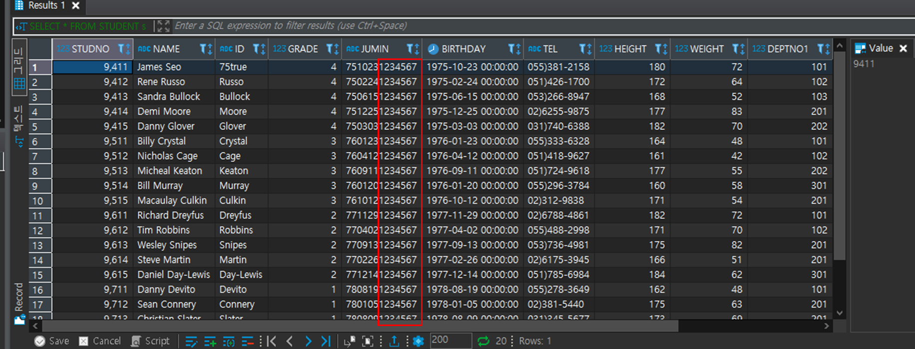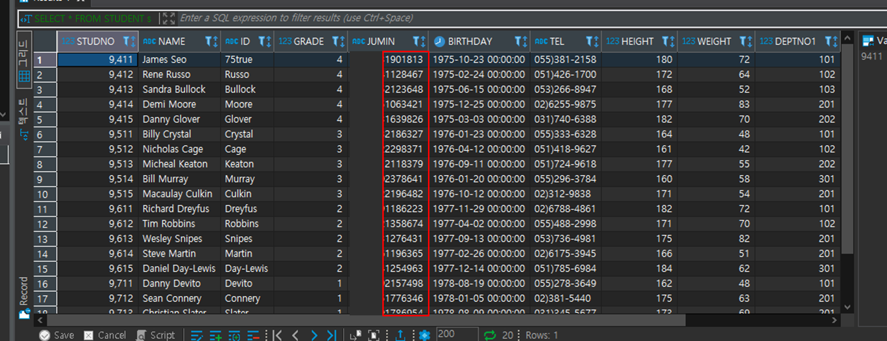 ์ฌ๊ธฐ์ ๊ฐ์ธ์ ๋ณด ๋ณดํธ ์ฐจ์์์ JUMIN์ปฌ๋ผ์ 7๋ฒ ์งธ๋ถํฐ '1234567'๋ก UPDATE ํ๋ ค๊ณ ํ๋ค.