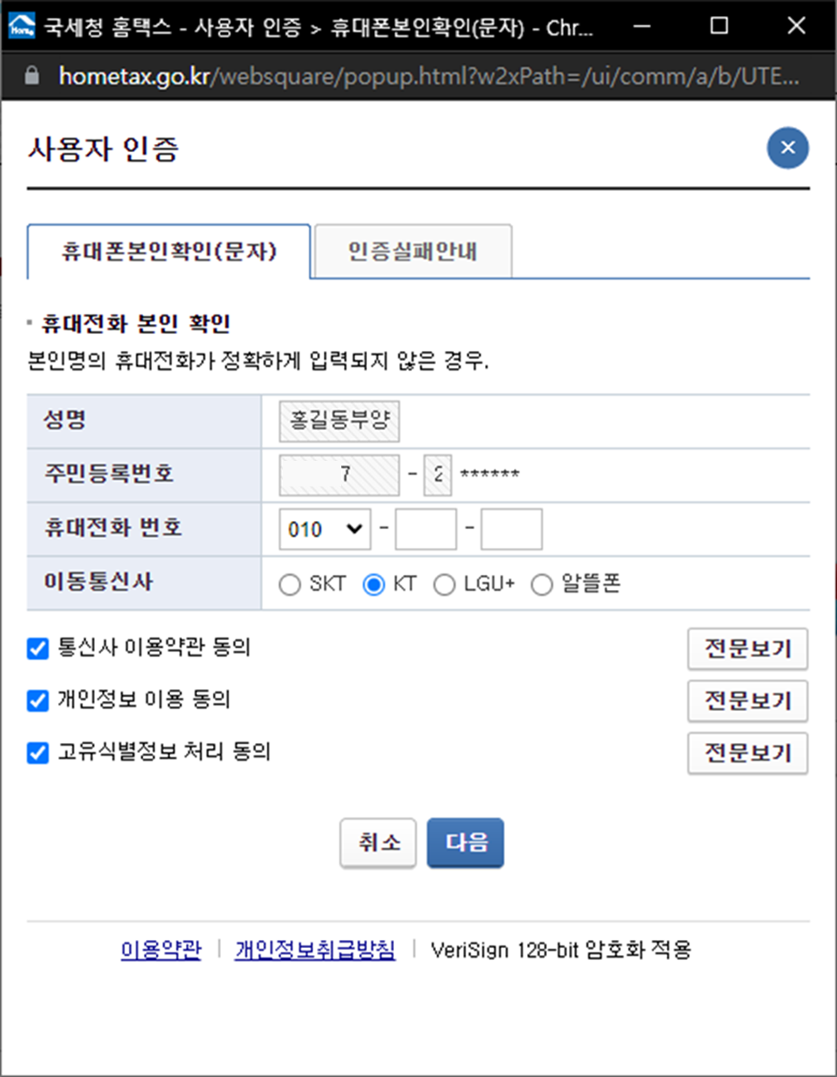 λ³ΈμΈμ΄ μνλ μΈμ¦λ°©λ²μ ν΅ν΄ λ‘κ·ΈμΈνλ©΄ λλ€.(λ κ°νΈμΈμ¦(λ―Όκ°μΈμ¦μ)λ₯Ό μ¬μ©νλ€.)