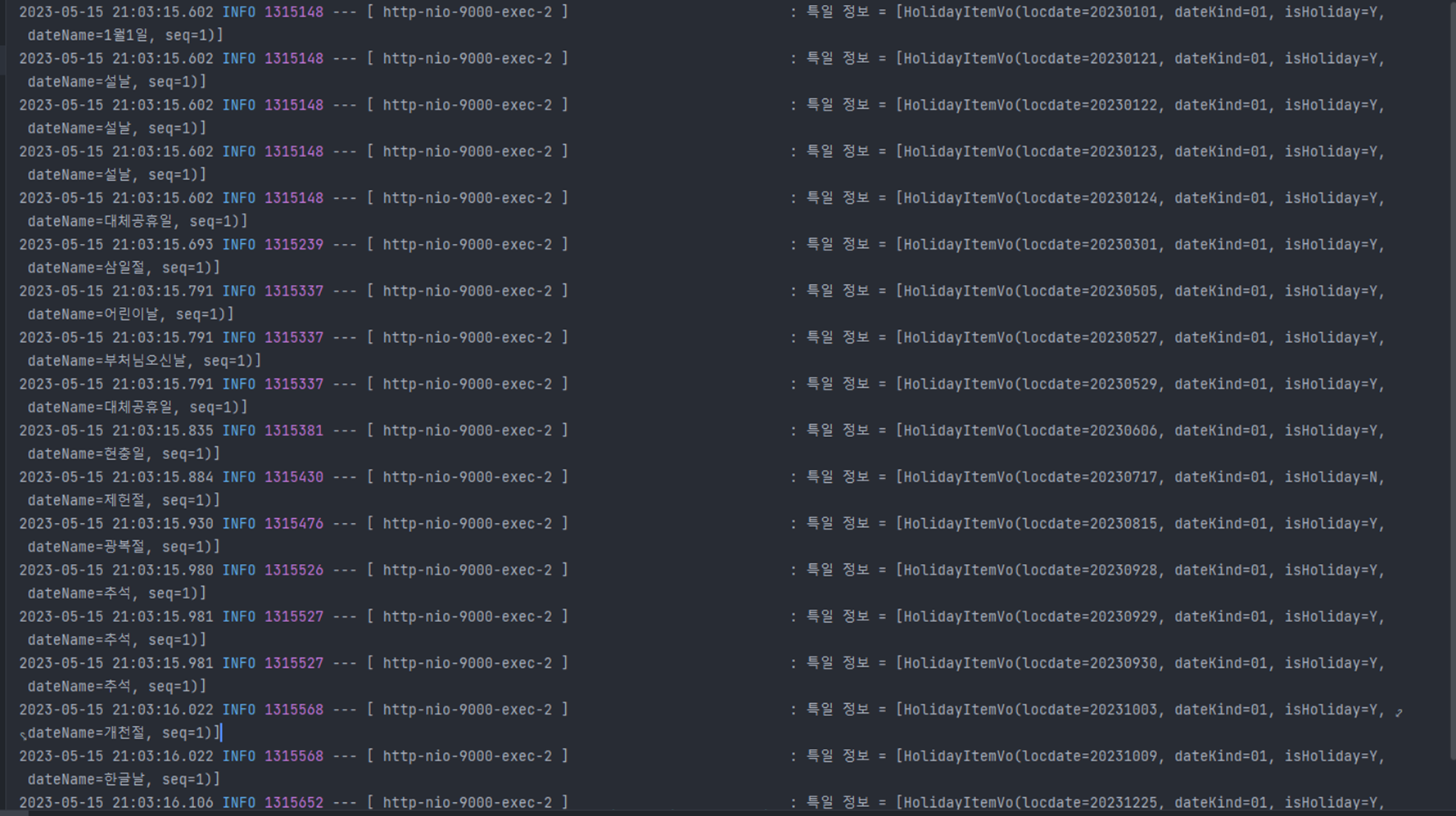for (HolidayItemVo item : items) log.info("ํน์ผ ์ ๋ณด = [{}]", item.toString());