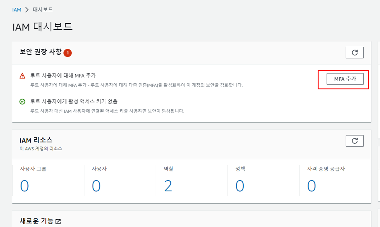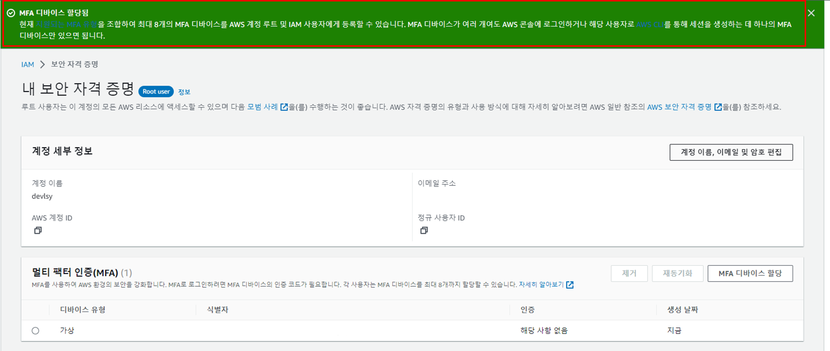 ๋ฃจํธ ์ฌ์ฉ์์ ๋ํด MFA ์ถ๊ฐ(IAM ๊ณ์ ์ด ์๋ ๋ฃจํธ ์ฌ์ฉ์)