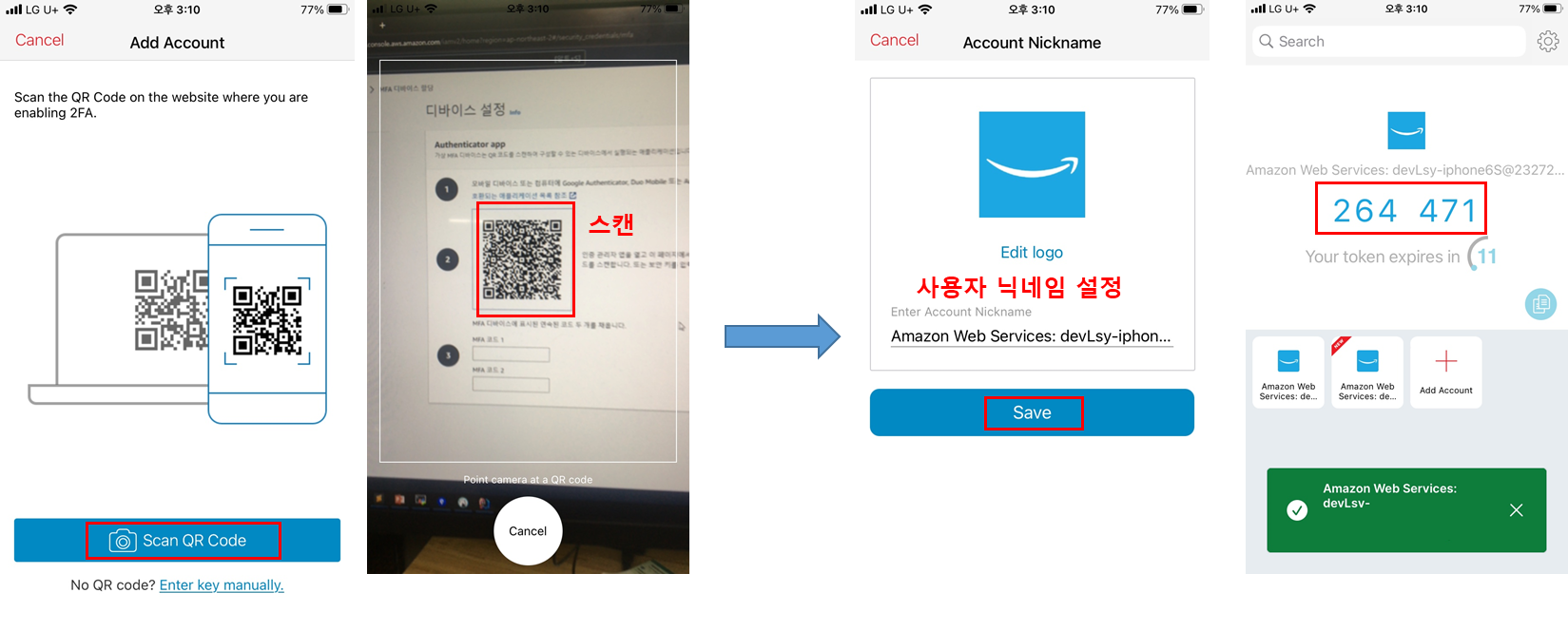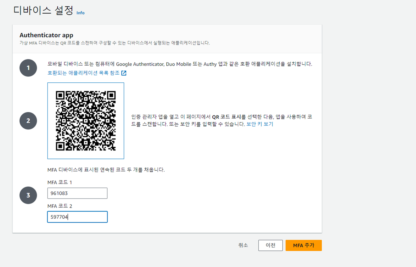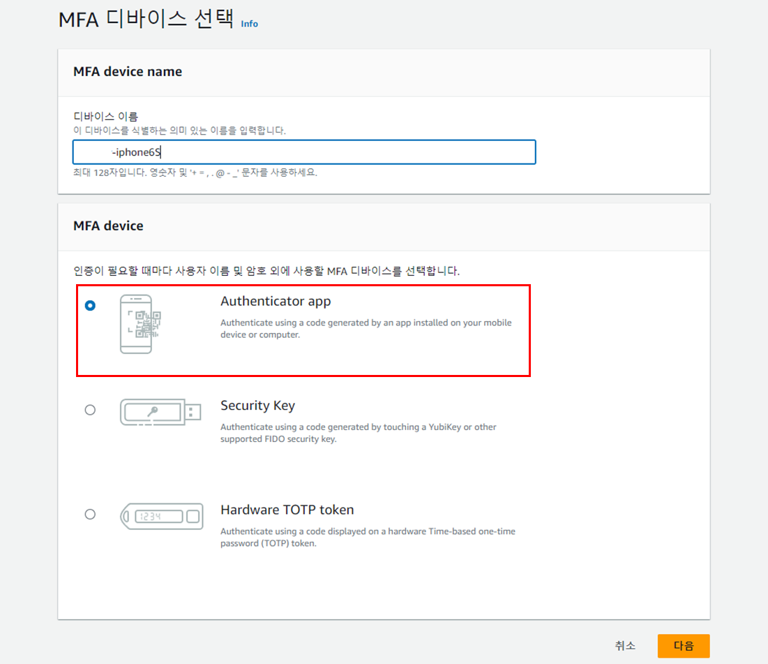 OTP๊ฐ ํ๋ฆฌ์ง ์์์ผ๋ฉด ์๋์ฒ๋ผ MFA ๋๋ฐ์ด์ค ํ ๋น๋์๋ค๊ณ ํ์๋จ