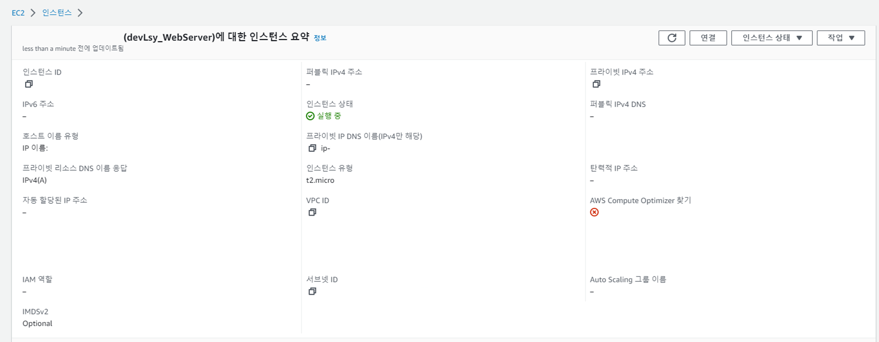 ์ธ์คํด์ค ID(๋ณด์ ์ ๊ฐ๋ ธ์) ๋๋ฅด๋ฉด ์๋์ฒ๋ผ ์ธ์คํด์ค ์์ฝ ์ ๋ณด๊ฐ ํ์๋จ
